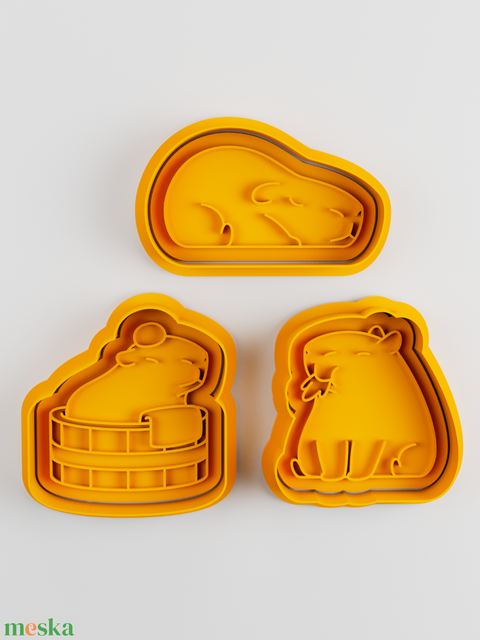 Ez a nagyon cuki és részletes capybara sütikiszúró tökéletes arra, hogy aranyos kapibara kekszeket süss vagy gyurmával játssz. A kapibara jelenleg az egyik legnépszerűbb állat a neten – relaxált, barátságos és imádnivaló kinézete miatt a gyerekek és a felnőttek is imádják.