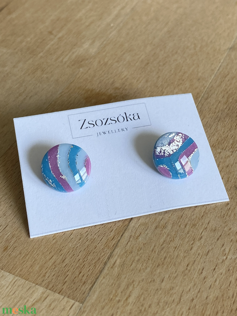 Blue and Purple Marble Nagy pötty fülbevaló