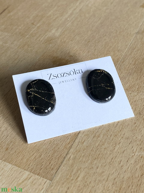 Black and Gold Oval pötty fülbevaló