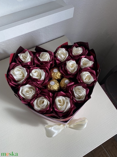 Bézs ajándék box rózsával – kézműves meglepetésdoboz