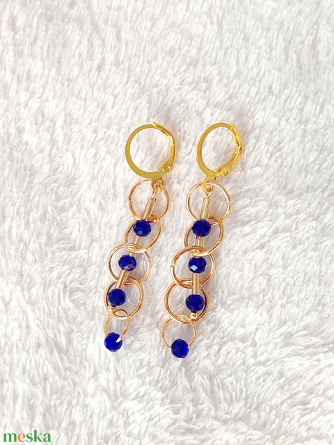 arany fülbevaló - elegáns, kék gyöngyökkel