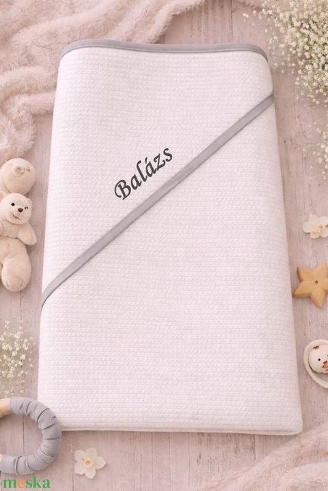 Baba / gyermek fürdőlepedő PRÉMIUM - ezüstszürke szegővel