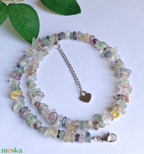 Fluorit splitter/ chips ásvány nyaklánc nemesacél szerelékkel, lánchosszabbítóval