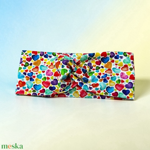 Vidd haza ezt a vidám, szivárványos szívecskékkel díszített fejpántot, ami nemcsak stílusos kiegészítő, de praktikus társ is a szelesebb napokon! A csavart/csomózott fazon idén is nagy kedvenc, hiszen különleges megjelenést kölcsönöz a kislányoknak.