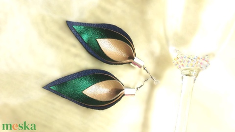 Türkiz-zöld - kék - pezsgő bőr fülbevaló - ajándék - Anyák napja- születésnap