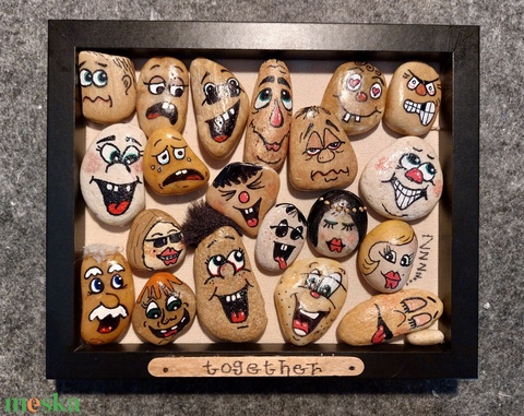 Egyedi tervezésű, saját kézműves termékem tengerparti kavicsokból, fa keretben. A kép mérete 23x19 cm. Súlya miatt ajánlom falra akasztás helyett inkább polcra helyezni.