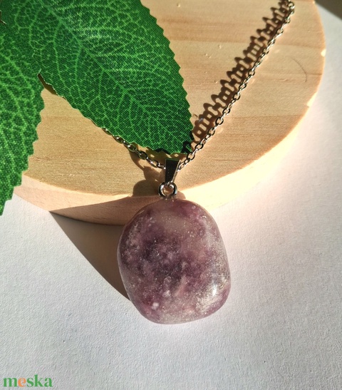 Lila lepidolit ásvány medál vékony nemesacél láncon – 50 cm