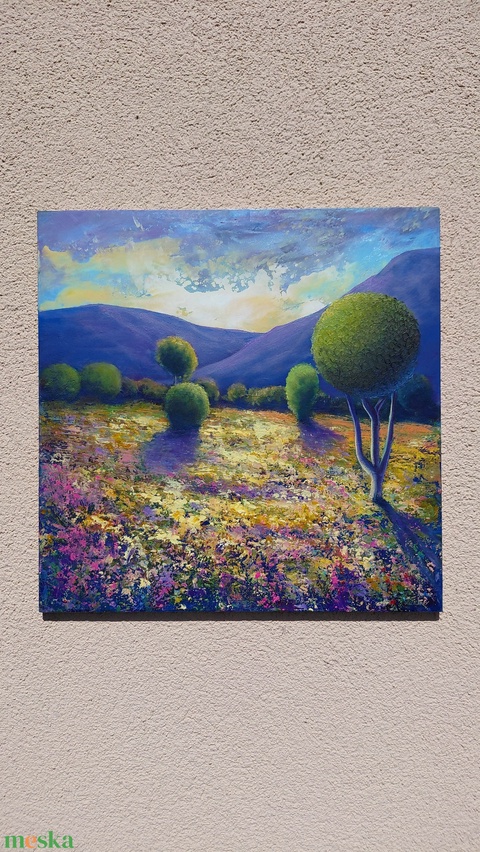 Időn túli táj - Eredeti, texturált, absztrakt tájkép, olajfestmény