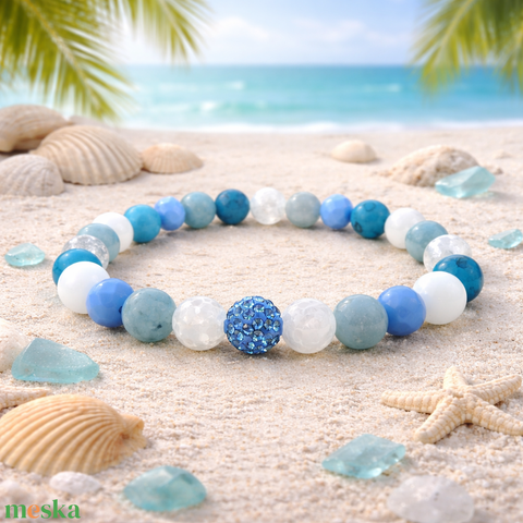 Ásvány-üveg karkötő hegyikristállyal, akvamarinnal és türkizzel – 17 cm
