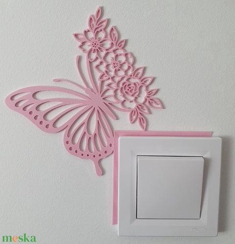Ez az egyedi, precíz 3D nyomtatással készült pillangós és virágos dísz tökéletes választás a villanykapcsolók környezetének dekorálására.