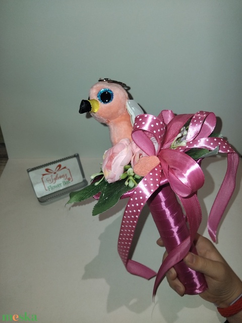 - Anyag/Összetevő plüss flamingó, szaténszalag, selyemvirág