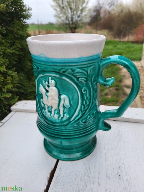 Nagyméretű fajansz, kerámia korsó, kancsó_jelenetes