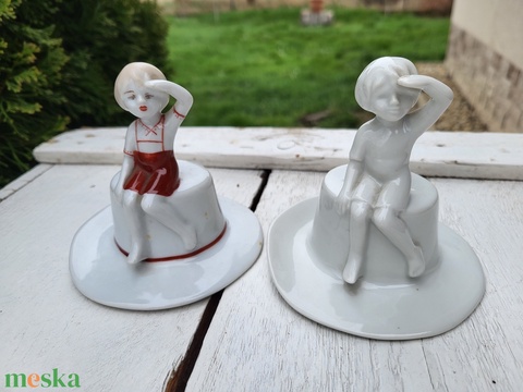 Alba Iulia porcelán_kalapjukon ülő gyerekek párban