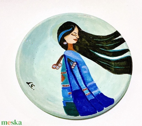 Ezt az egyedi, komplex női mintás tányért kézzel festettem. Közel állnak hozzám a hasonlóan színes, női karaktereket tartalmazó minták, ilyen alkotótevékenységekben találom meg igazán a nőiesség szépségét. Ezen a tányéron szerettem volna a kék lehető legtöbb árnyalatát egy mintában megjeleníteni. :)