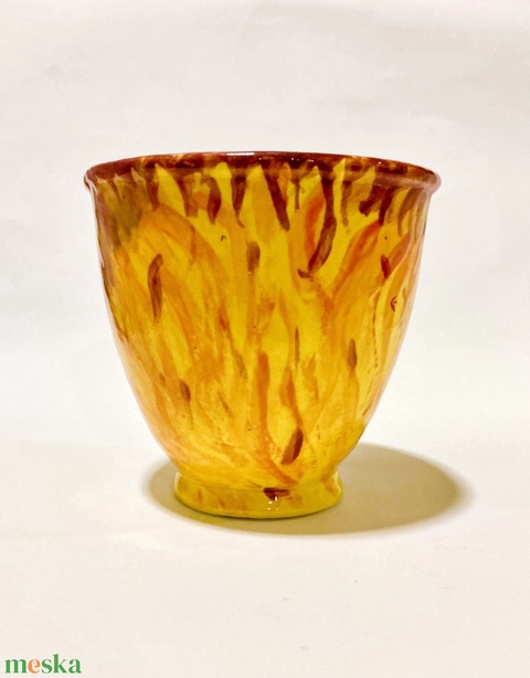 Tűz mintájú, kézzel festett fül nélküli bögre