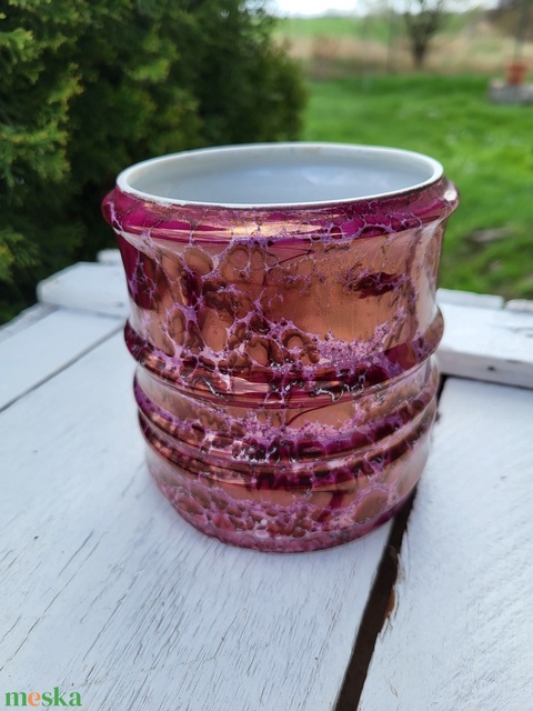 Hollóházi porcelán_lüsztermázas kaspó, váza