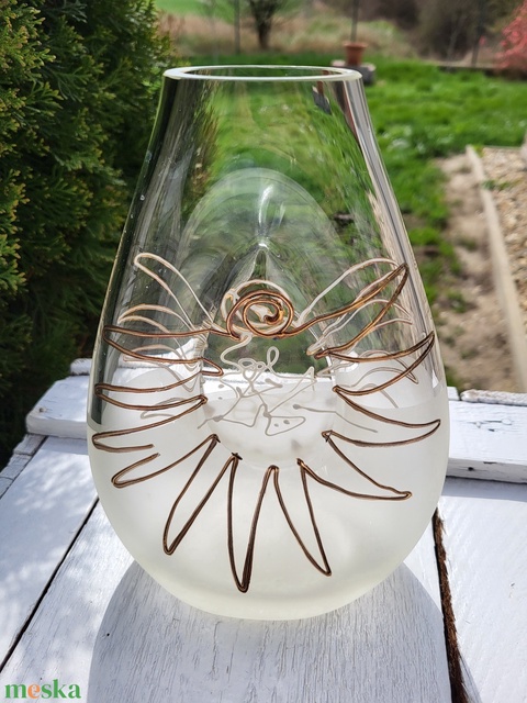 Kézműves design üvegváza dombormintás festéssel