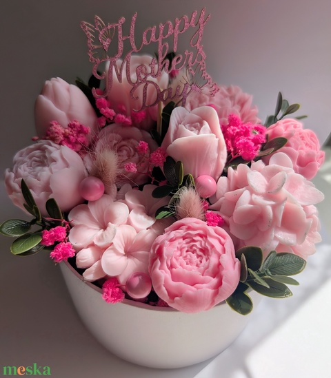Anyák napi rózsaszín, illatosított szójaviasz virágbox