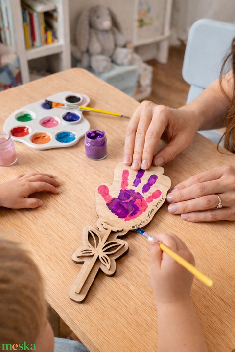 Kézlenyomatos örökvirág Anyák napjára – egyedi névvel, választható mintával, festhető ajándék gyerekeknek