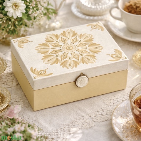6 rekeszes mandala teásdoboz pezsgő színben