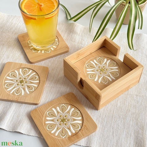 Arany-bézs mandala bambusz poháralátét szett – 6 db