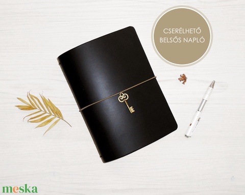 TITKOK KULCSA - Cserélhető füzetes valódi bőr borítású utazónapló A5 méretben - 4 db sima füzetet tartalmaz a csomag