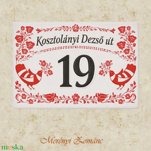 Egyedi kézzel festett tűzzománc házszámtábla.