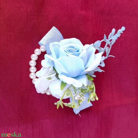 - Anyag/Összetevő selyemvirág, szalag, teklagyöngy