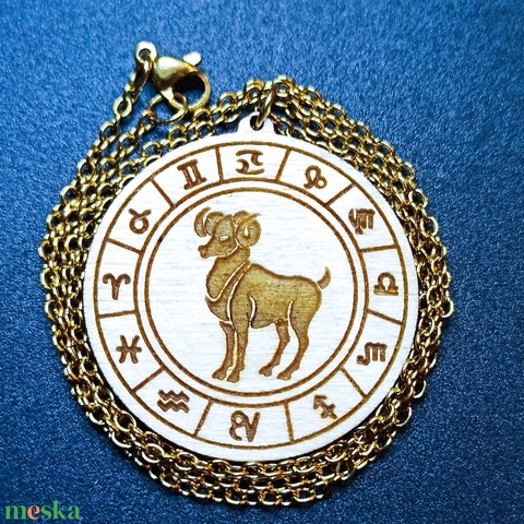 ékszer, nyaklánc, medálos nyaklánc, kos, horoszkop, gravírozott, fa, zodiák, csillagjegy, ajándék, születésnap, női, férfi