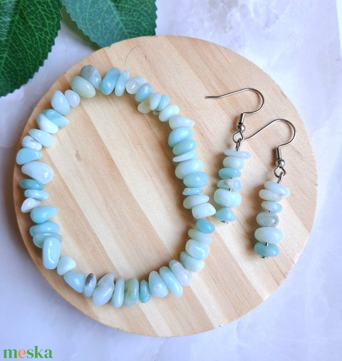Amazonit splitter ásvány karkötő és fülvevaló szett- természetes szemcse/chips forma