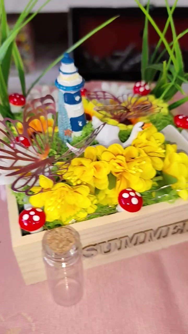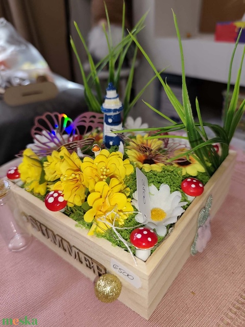 Tavaszi, nyári asztali dísz, led-es világító fa box