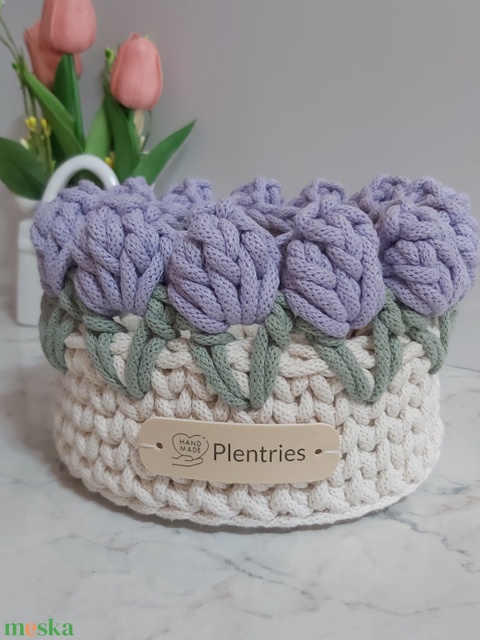 Horgolt tulipános kosár