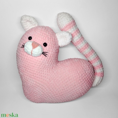 Szívből cica – vagy cicából szív? Plüss horgolt párna.
