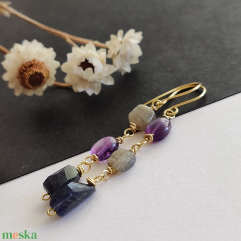 - Anyag/Összetevő sárgaréz drót, iolit, labradorit, ametiszt