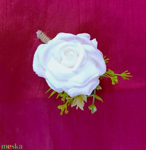 Vőlegény/Fiú tanú kitűző, fehér rózsával