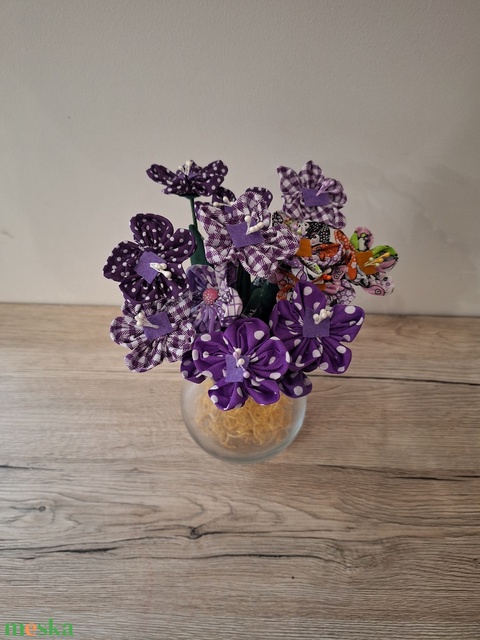 Lila árnyalatos nyári textil virágok