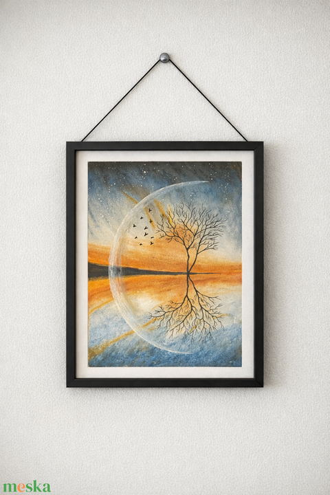 művészet, festmény, festmény vegyes technika, fény, romantika, éjszaka, hold, holdfény, oilpaste, olajoszsírkréta, éjszakaifény