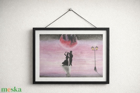művészet, festmény, festmény vegyes technika, holdfény, éjjelitalálkozás, romantika, szerelem, tánc, örökké, hold