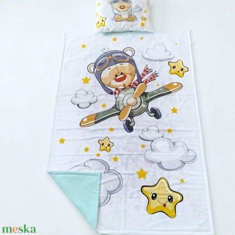Pilóta macis ovis ágynemű szett - menta– töltött, pamut, egybevarrt