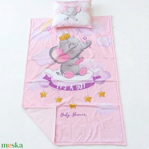 Elefántos ovis ágynemű szett - rózsaszín– töltött, pamut, egybevarrt
