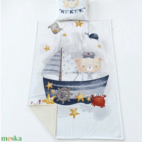 Tengerész macis ovis ágynemű szett - bézs – töltött, pamut, egybevarrt