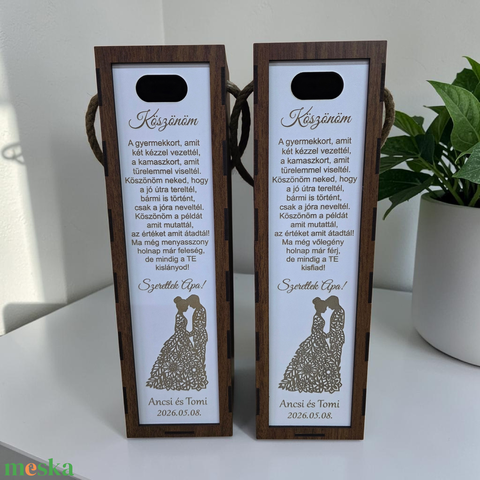 Esküvői 1 pár szülőköszöntő ajándék bortartó