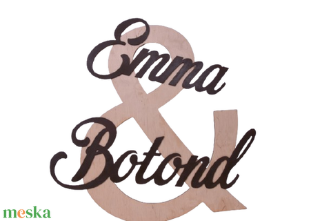 Ez az egyedi gravírozott esküvői háttér dekoráció tökéletes választás a nagy napra! A dekoráció központi eleme egy „&” jel, aminek a mérete kb 61×57 cm, erre tesszük az ifjú pár neveit. A gravírozott nevek egyedivé és személyessé teszik ezt a díszt, amely tökéletes hátteret biztosít az esküvői fotókhoz, és gyönyörű dekorációként szolgál a szertartás vagy a lakodalom helyszínén.