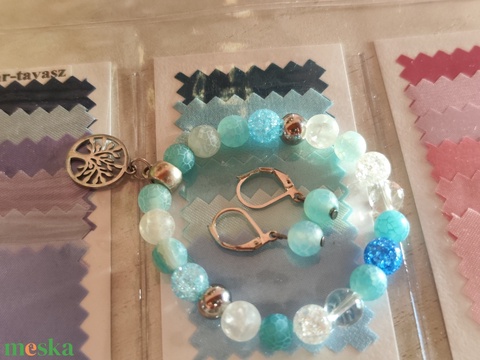 Égszínkék Harmónia – Nemesacél Achát és Hegyikristály Ékszerszett