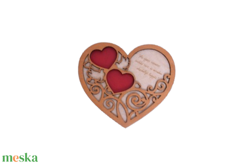 Ez a bájos szív alakú gravírozható gyűrűtartó tökéletes választás minden esküvői párnak, akik szeretnék stílusosan és egyedien bemutatni értékes gyűrűiket. A kiváló minőségű fa alapra precízen gravírozott szív motívum és díszítések teszik ezt a gyűrűtartót különlegessé és romantikussá. Az elegáns szív alakú kialakítás lehetővé teszi, hogy az ifjú pár egy helyen tárolja és mutassa be esküvői gyűrűit, így mindig könnyen hozzáférhetnek hozzájuk, és emlékeztetik egymást a közös elköteleződésre. Az egyedi gravírozás lehetőséget ad arra, hogy a gyűrűtartó személyre szabott üzenettel, nevekkel vagy dátumokkal legyen ellátva, így ez az ajándék nemcsak praktikus, hanem emlékezetes és szívhez szóló is lesz. Legyen ez a gravírozható szív alakú gyűrűtartó az ideális választás, hogy az esküvői napotokon még különlegesebbé tegyétek és megőrizzétek az esküvő emlékeit!