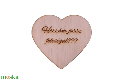 Ez a bájos „Hozzám jössz féleségül” felirattal ellátott szív alakú gravírozott gyűrűtartó tökéletes választás minden párnak, akik együtt szeretnék eltölteni a további közös életüket. A kiváló minőségű fa alapra precízen gravírozott felirat és szív motívum teszi ezt a gyűrűtartót különlegessé és személyessé. Az egyedi gravírozás lehetőséget ad arra, hogy a gyűrűtartó személyre szabott üzenettel, nevekkel vagy dátumokkal legyen ellátva, így ez az ajándék nemcsak praktikus, hanem emlékezetes és szívhez szóló is lesz.