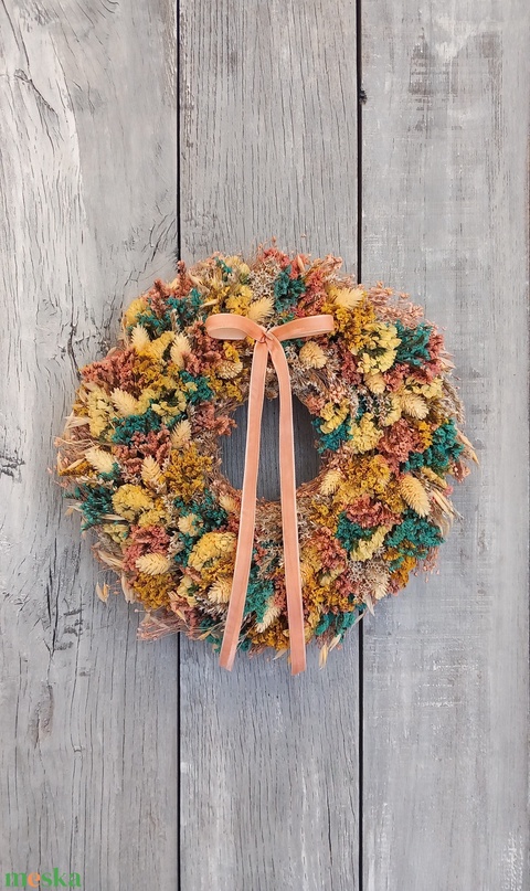 - Anyag/Összetevő szalag, szalmakoszorúalap, szárazvirágok, szárítottnövények
