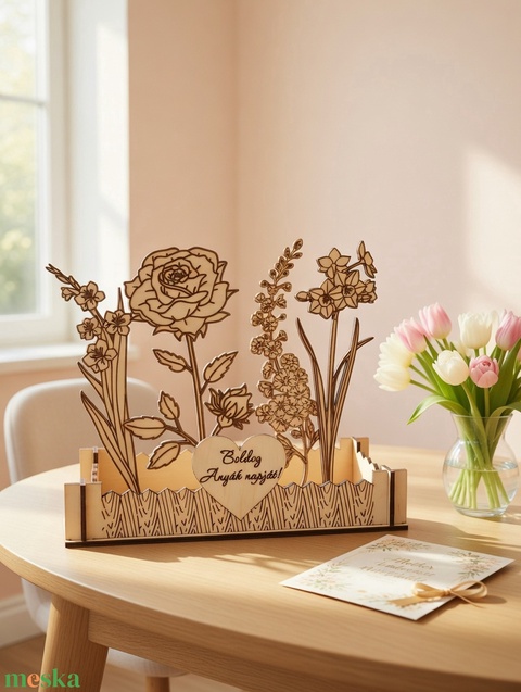 Szeretnéd idén egy olyan ajándékkal meglepni Édesanyádat vagy Nagymamádat, ami sosem hervad el, és minden nap emlékezteti őt a szeretetedre? Ez a kézzel csiszolt, lézergravírozott fa virágoskert a tökéletes választás!
