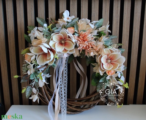 - Anyag/Összetevő vesszőkoszorú, műzöldek, selyemvirág, magnólia