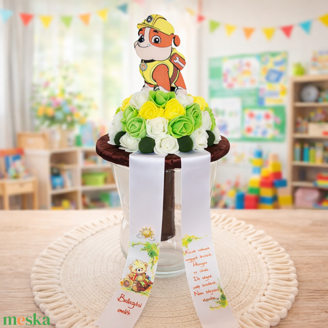 - Anyag/Összetevő habrózsa, karton, szatén